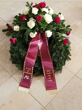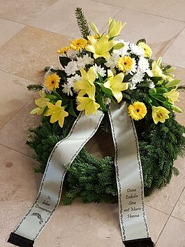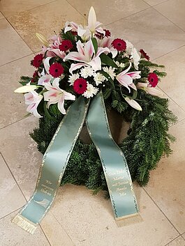 Unser Haus berät Sie nicht nur bei der Wahl von Grabstätte und Beisetzung, sondern auch bei der Wahl von Blumenschmuck, Kränzen und Trauerschleifen.
